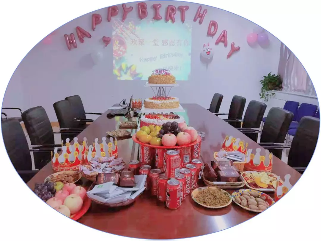 為感謝各位員工的辛勤努力和付出,豐富員工的精神文化生活,讓員工們真切感受到公司的關(guān)懷,增強(qiáng)員工的歸屬感與集體榮譽(yù)感,公司于2019年8月23日在生產(chǎn)基地會(huì)議室為1-7月份員工舉辦了“歡聚一堂 感恩有你”主題生日會(huì)。綜合行政部提前為大家準(zhǔn)備了零食、水果、蛋糕和飲料,期待能和壽星們共同度過(guò)一個(gè)輕松愉快的下午。